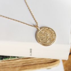 Collier personnalisé - Médaille Colombe et branche d'olivier - Plaqué or